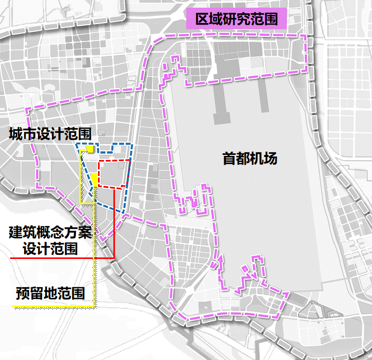 (3)區(qū)域研究:在臨空經(jīng)濟示范區(qū)轉(zhuǎn)型升級的大背景下,結(jié)合周邊存量土地資源的改造利用,重點在功能布局、公共空間構(gòu)建、景觀塑造、交通體系等方面提出優(yōu)化意見和意向方案。研究范圍約3182公頃。