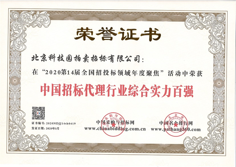 2020第14屆全國招投標(biāo)領(lǐng)域年度聚焦“中國招標(biāo)代理行業(yè)綜合實力百強”