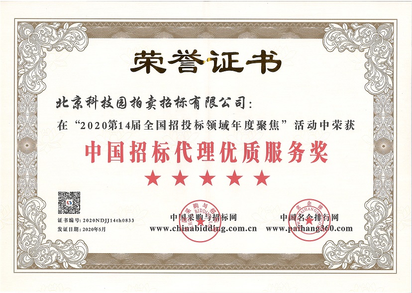 2020第14屆全國招投標(biāo)領(lǐng)域年度聚焦“中國招標(biāo)代理優(yōu)質(zhì)服務(wù)獎”