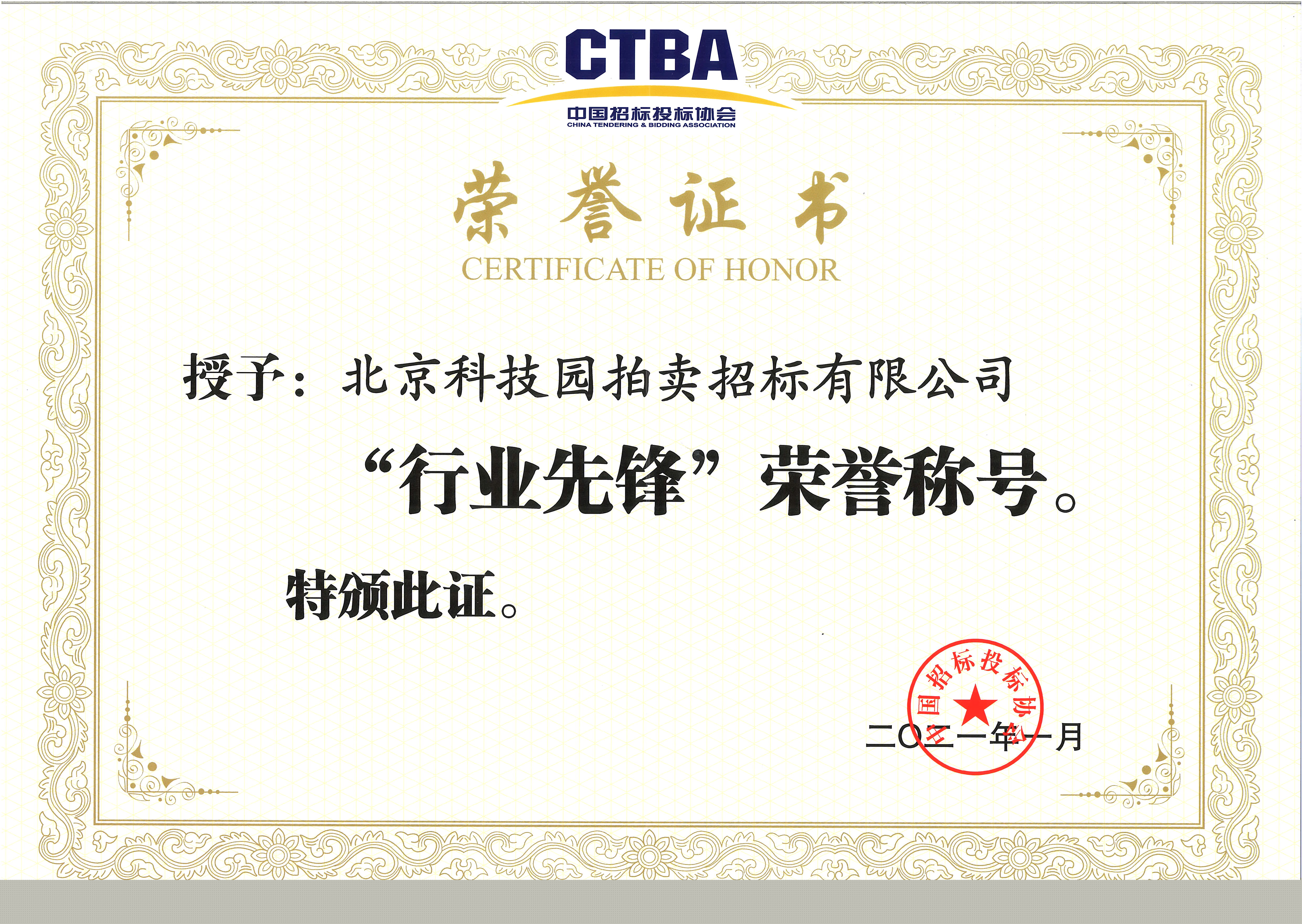 2021年中招協(xié)“行業(yè)先鋒”榮譽稱號