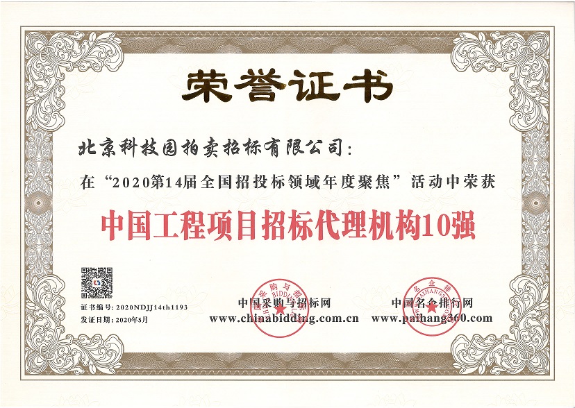 2020第14屆全國招投標領(lǐng)域年度聚焦“北京市招標代理公司10強
