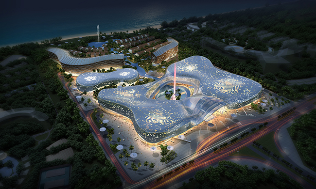 項目概況 總建筑面積約22.1萬平方米(商業(yè)、酒店、產(chǎn)權(quán)式酒店),其中一期商業(yè)建筑7萬平米(免稅城)
